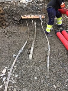I dag har me lagt ned trekkerøyr til installasjonane til nabohus der det skal installerast ny kollektorsløyfe. Det skal også monterast ein trekke/koplingskum oppe med muren i hamna. Har òg fått med oss røyr for bekk ut i sjø. Det er no snart klart til å få støypt dragar og plate for L-element i front på kai. Trur dette arbeidet startar neste helg (5-7 mai).