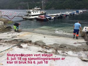 Sjøsettingsrampe Sjøsettingsrampe 5. juli 2018 Hei ja no er sjøsettingsrampen ferdig støypt og er klar til bruk frå fredag 6. juli 18. Hans Jakob